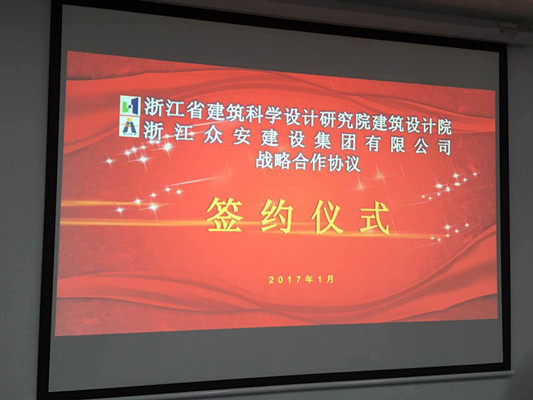 1月23日,浙江眾安建設集團與浙江省建筑科學設計研究院建筑設計院簽訂了《戰略合作協議》,集團董事長周世安、副總方德林、負責人俞杭華。建科院總經理游勁秋、周萌強院長出席簽字儀式。