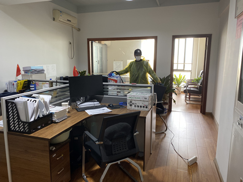 219日,集團第一批員工有序復工。公司設立防護組,早早進行辦公室的全面消毒。830左右,有員工陸續到達,對進入公司大門的復工人員,有專人負責測體溫、噴灑消毒液、發放新口罩和消毒液、體溫登記等工作。對體溫超過37.3攝氏度的人員堅決禁止入內,對釘釘員工健康碼非綠碼的堅決禁止入內做到全天有人值守,做到發現異常立即預警上報,做到衛生間、公共區域配備消毒洗手液,做到廢棄口罩集中回收,做到場所每日消毒登記,做到各類防疫臺賬即時更新,多措并舉,復工抗疫兩手抓。