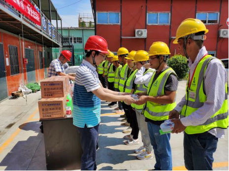 本次活動由集團領導,黨支部,工會牽頭,分成幾個慰問組,兵分幾路為每個區域項目一線員工送上清涼油、毛巾、肥皂、花露水等防暑降溫用品,向高溫作業一線勞動者致以崇高敬意!